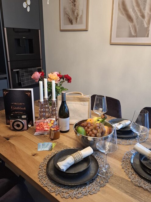 Satellitenfernsehen, Toaster, Kinderhochstuhl, Safe, Kombi-Mikrowelle, Haustiere mit Rücksprache gestattet, Gartenmöbel, Rauchmelder, Toilettenartikel, Küchengeräte, Ruhiges Zimmer/Appartement, Küche, Bademantel, Kochmöglichkeiten, Geschirr vorhanden, Gefrierfach, Geschirrspülbecken, Gefriermöglichkeit, Fernseher, Verleih E-Bike, Wasserkocher, Neuwertiges Zimmer/App., Waschmaschine, Ohne Teppich, Wohnzimmer, Privater Eingang, Offener Kamin, Terrasse (teilweise), Dunstabzug, Balkonmöbel, Handtücher vorhanden, Grundausstattung (Handtücher, Bettwäsche, Seife, Toilettenpapier), Bettwäsche vorhanden, Holz- oder Parkettboden, Garten, Mikrowelle, Abstellraum, Haarföhn, Terrasse, Balkon (teilweise), Kaffee-Maschine, Geschirrspülmaschine, Kachelofen, Feuerlöscher, Kühlschrank, Internetanschlussmöglichkeit, Wohn-/Schlafräume getrennt, Küchenzeile, Sauna